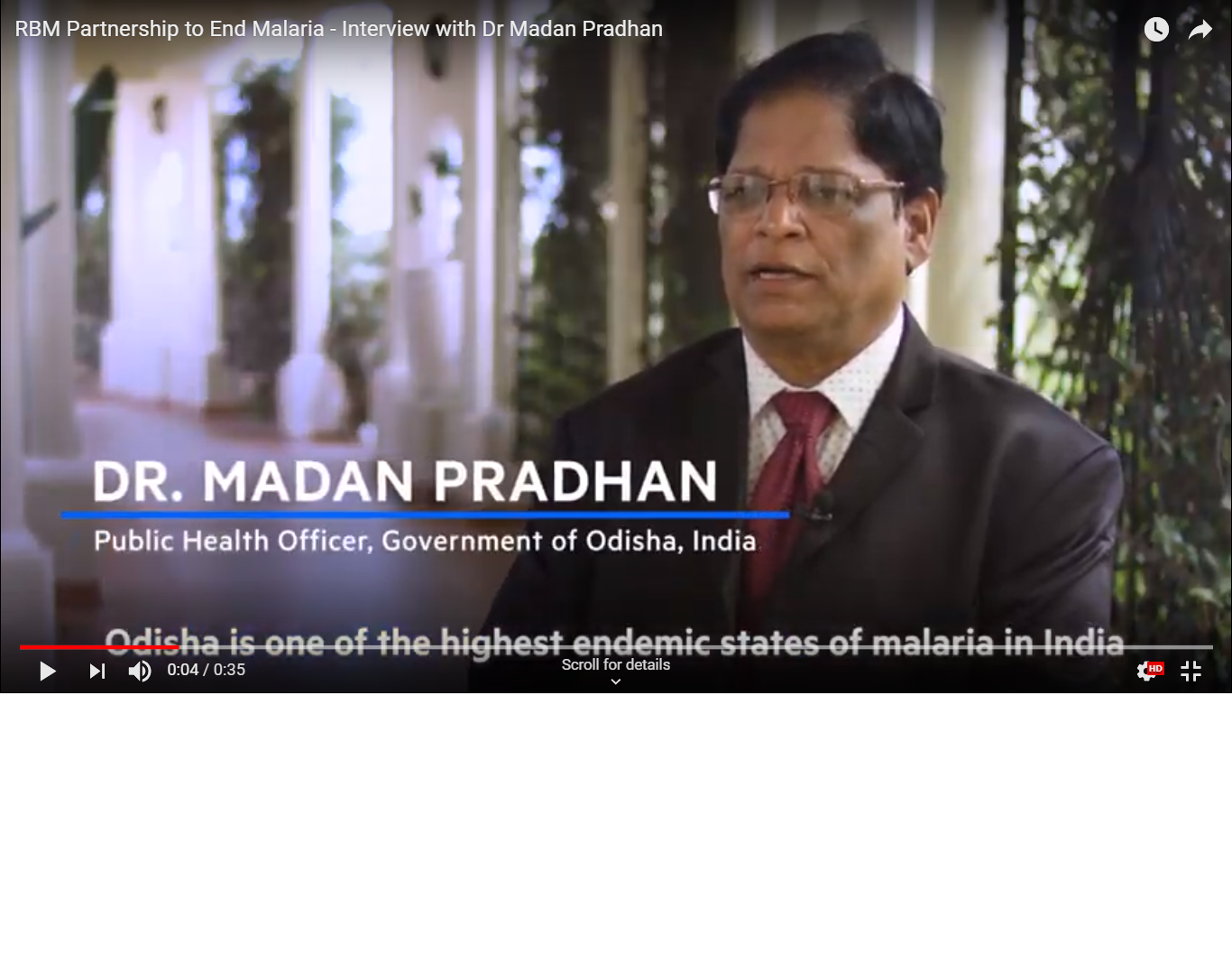 RBM Partnership interviews Dr Madan Pradhan - Public Health Officer, Government of Odisha. Odisha has registered significant progress in the reduction of malaria cases this year and has been recognized in the World Malaria Report 2018 of the World Health Organization. Interview - https://www.youtube.com/watch?v=yUcIlDkI1IA&feature=youtu.be